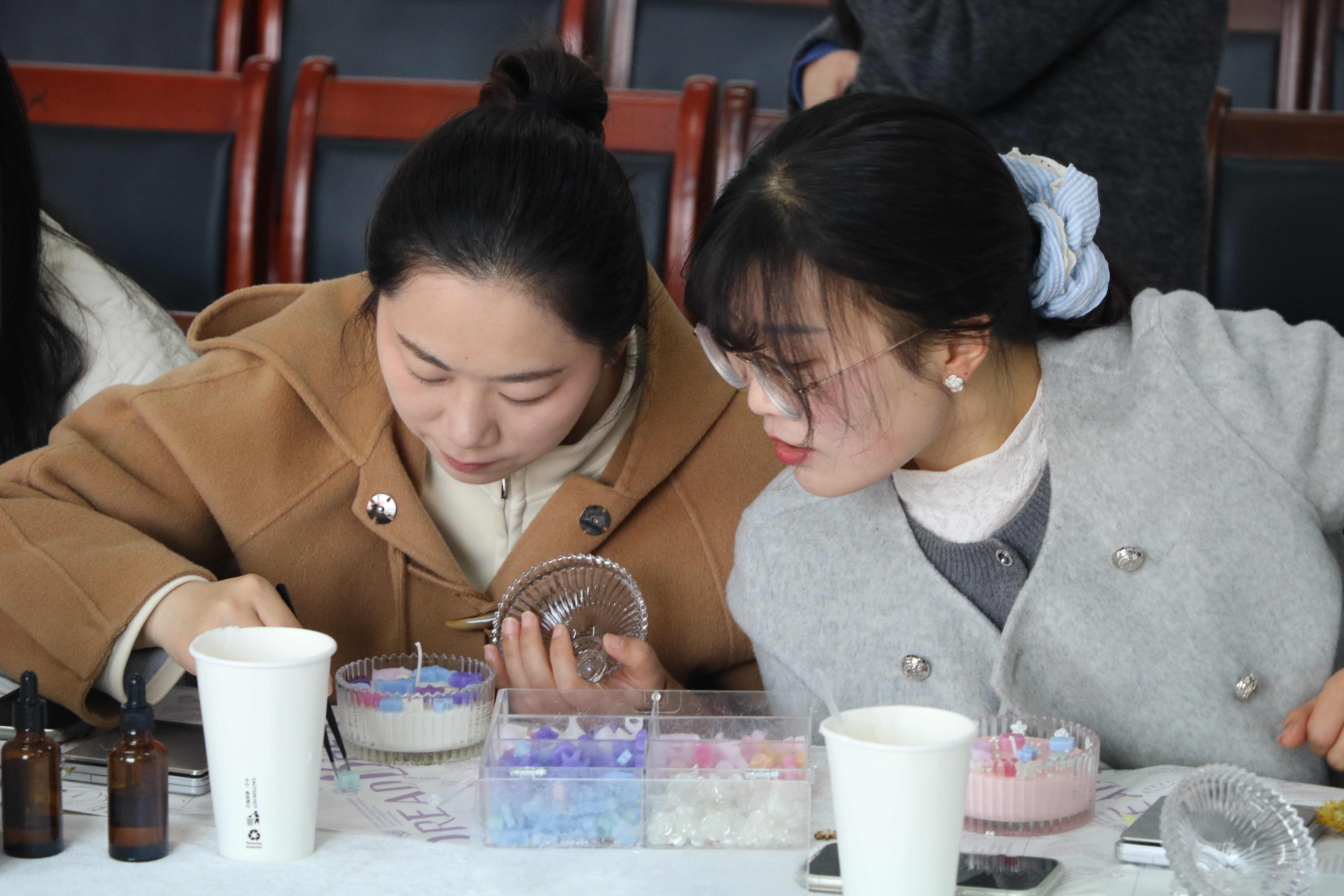 活动现场暖意融融,花香与蜡香交织,笑语与欢声相伴。在专业老师指导下,女教职工们化身“生活艺术家”——熔蜡、调香、注模、装饰,每一个步骤都倾注着对美的追求。淡紫色的薰衣草、清新的柑橘调、温暖的木质香……一款款独具匠心的香薰蜡烛在指尖诞生。在慢下来的时光里,大家暂别工作的忙碌,于氤氲香气中舒缓压力、陶冶情操,感受手作带来的治愈与宁静。