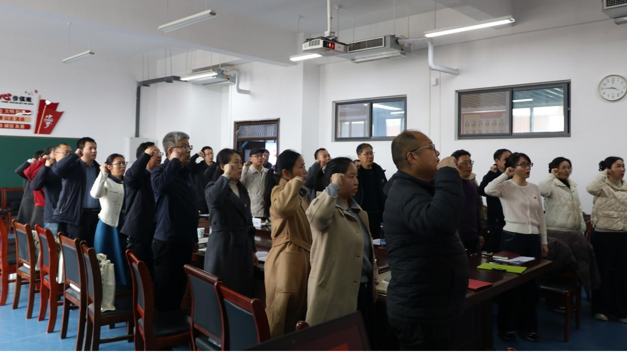 仪式最后,全体党员面向党旗重温入党誓词。